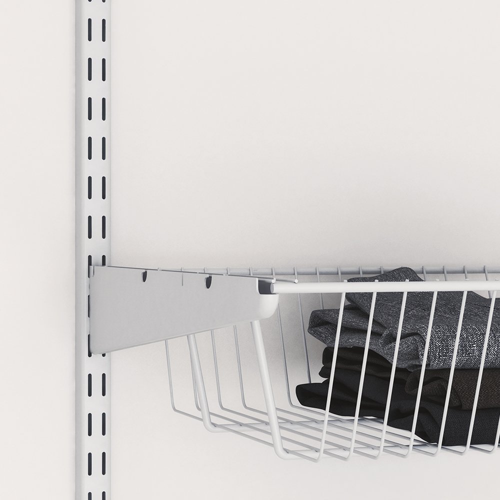 Стойка - это один из основных элементов системы хранения. Навешивается на рельс. На стойки устанавливаются кронштейны, на которые устанавливаются элементы хранения(полки, обувницы, полки-корзины, выдвижные рамы и др.). Допускается использование без рельса