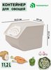 Удобный, качественный и прочный пластиковый контейнер 11.2 литра для длительного хранения овощей. Компактный и надежный, с уникальной системой естественной вентиляции он не позволит вашим продуктам быстро потерять форму, сохранит свежесть и порадует вас и ваших близких. Легкая пищевая пластмасса бережно сохранит ваши продукты. Внимание! Оттенок контейнера для овощей может меняться от светлого до более тёмного (почти коричневого) в зависимости от партии товара. Это связано с особенностями производства