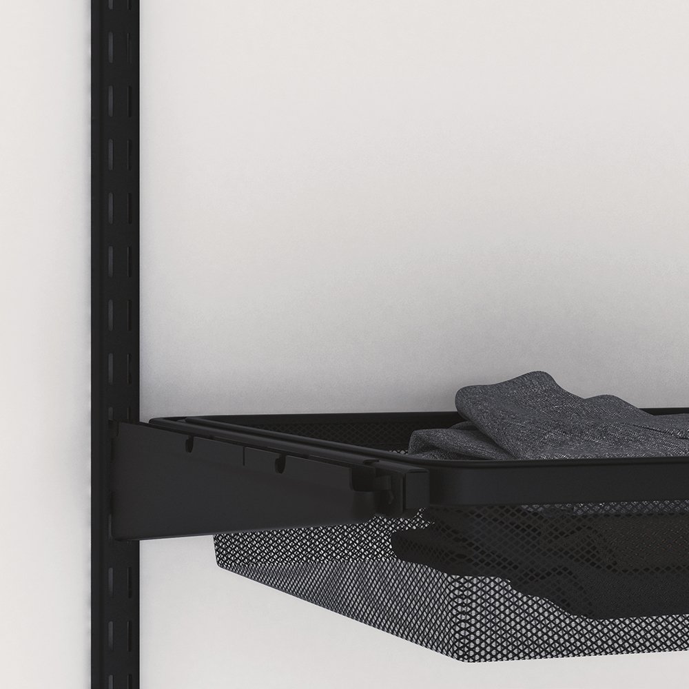 Стойка - это один из основных элементов системы хранения. Навешивается на рельс. На стойки устанавливаются кронштейны, на которые устнавливаюся элементы хранения(полки, обувницы, полки-корзины, выдвижные рамы и др.). Допускается использование без рельса
