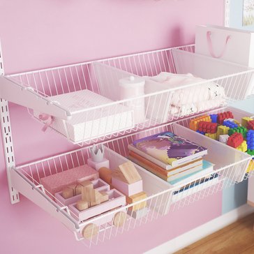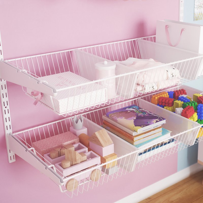 Разделители для полок-корзин – новый опциональный элемент системы Larvij. Он легко монтируется в любом месте полки-корзины, помогая зонировать ее пространство. Полученные при установке разделителей ячейки позволят распределить вещи.