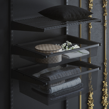 Мелкосетчатая корзина для стеллажной и системы Larvij изготовлена из высококачественной стали. Лаконичный и стильный дизайн. Используется вместе с выдвижной рамой или с рамами для стеллажей.