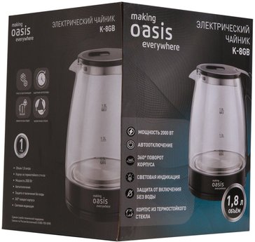 Электрический чайник – это удобный прибор для быстрого нагревания и кипячения воды. Данное устройство используется в бытовых и аналогичных целях, поэтому подойдет как для кухонных зон в жилых помещениях, так и для рабочих пространств в гостиницах, офисах или магазинах. Электрические чайники оснащены различными функциями, такими как система автоотключения при закипании, защита от включения без воды, съемный моющийся фильтр, световая индикация и т.д. Представленные модели могут быть не только функциональными, но и декоративными. Все модели имеют стильный дизайн и яркие цвета, что позволяет им стать отличным элементом декора в любом пространстве. Преимущества: • Объем 1,8 литра • Корпус из термостойкого стекла • Мощность 2000 Вт • Автоотключение • Защита от включения без воды • 360° поворот корпуса • Световая индикация
