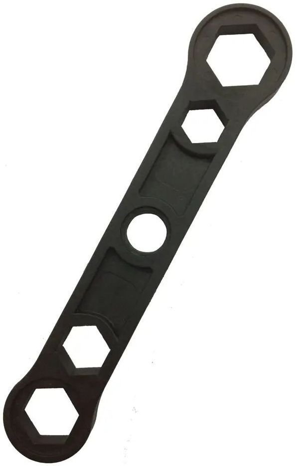 Ключ для переходников и заглушек 4 размера используется при монтаже радиатора. Переходники и заглушки выполняют сразу 2 функции: герметизации прибора и декоративную. Эмалевое покрытие делает элементы незаметными на фоне конструкции радиатора. При применении стандартных ключей внешнее покрытие может повредиться. Преимущества: - не нарушает целостность эмалевого слоя; - наличие 5 отверстий под шестигранный и круглый крепеж; - подходит под размеры: 17, 22, 25, 28, 32.