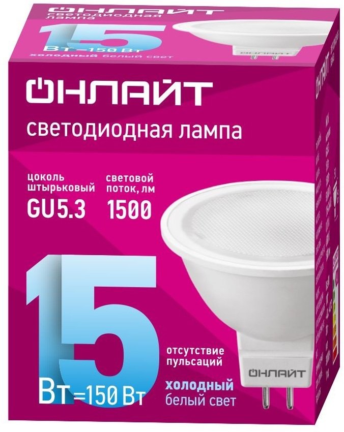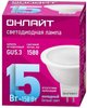 - Лампа светодиодная Онлайт 15Вт GU5.3 6500К свет холодный белый