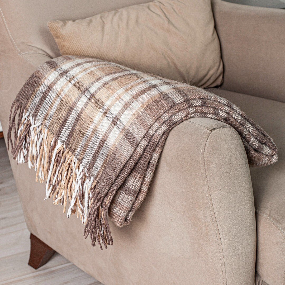 - Плед смесовой Vse DOMA Метро 140х200см бел-беж-кор (шерсть 50%)