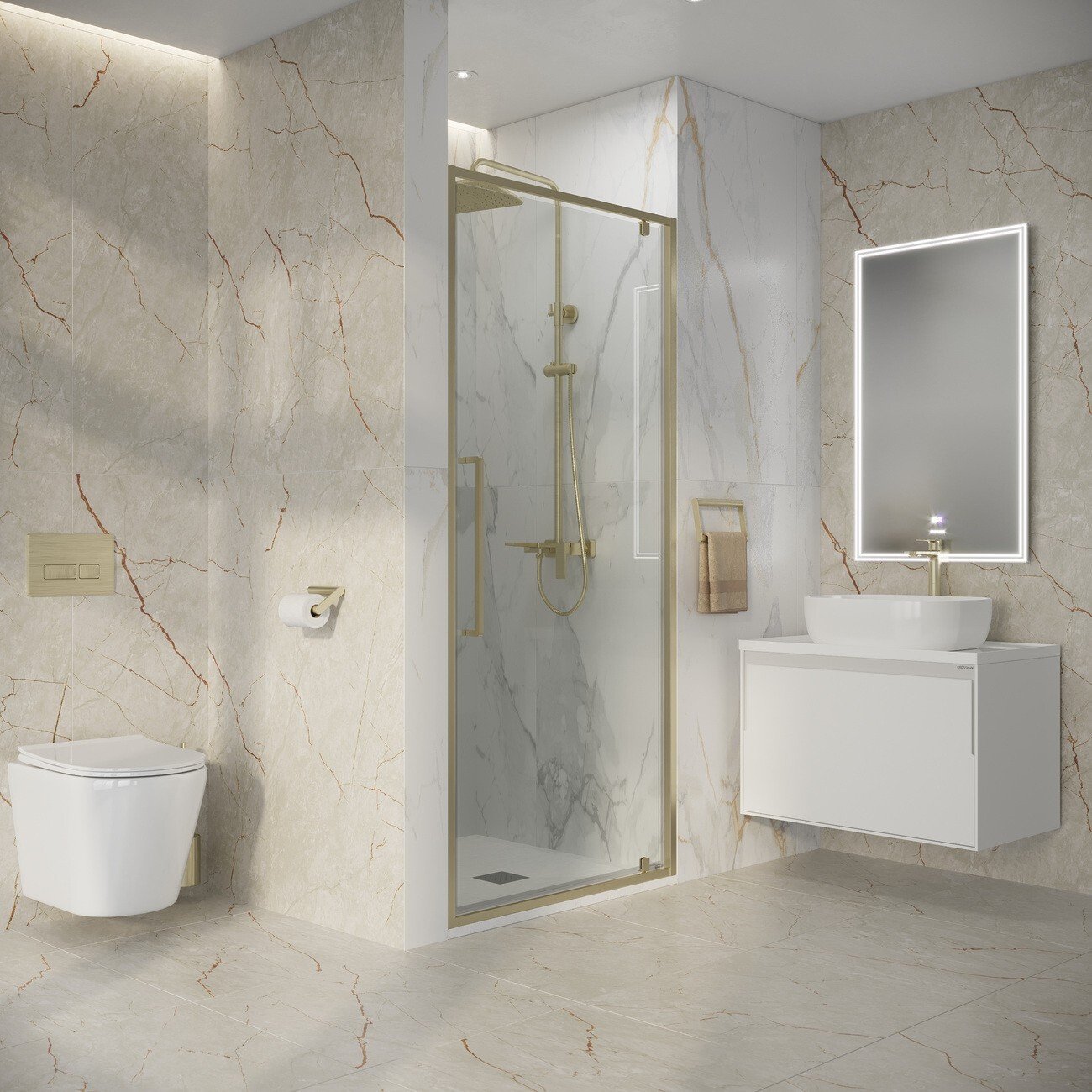 Дверь в нишу Niagara Nova NG‑45‑10ASG — элегантное решение для оформления ванной комнаты. Лаконичный дизайн с прозрачным стеклом и золотистым сатиновым профилем придаёт пространству изысканность и визуально его расширяет.