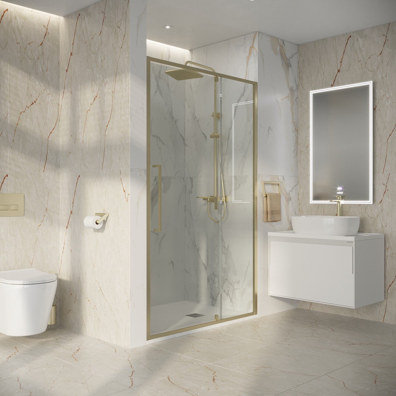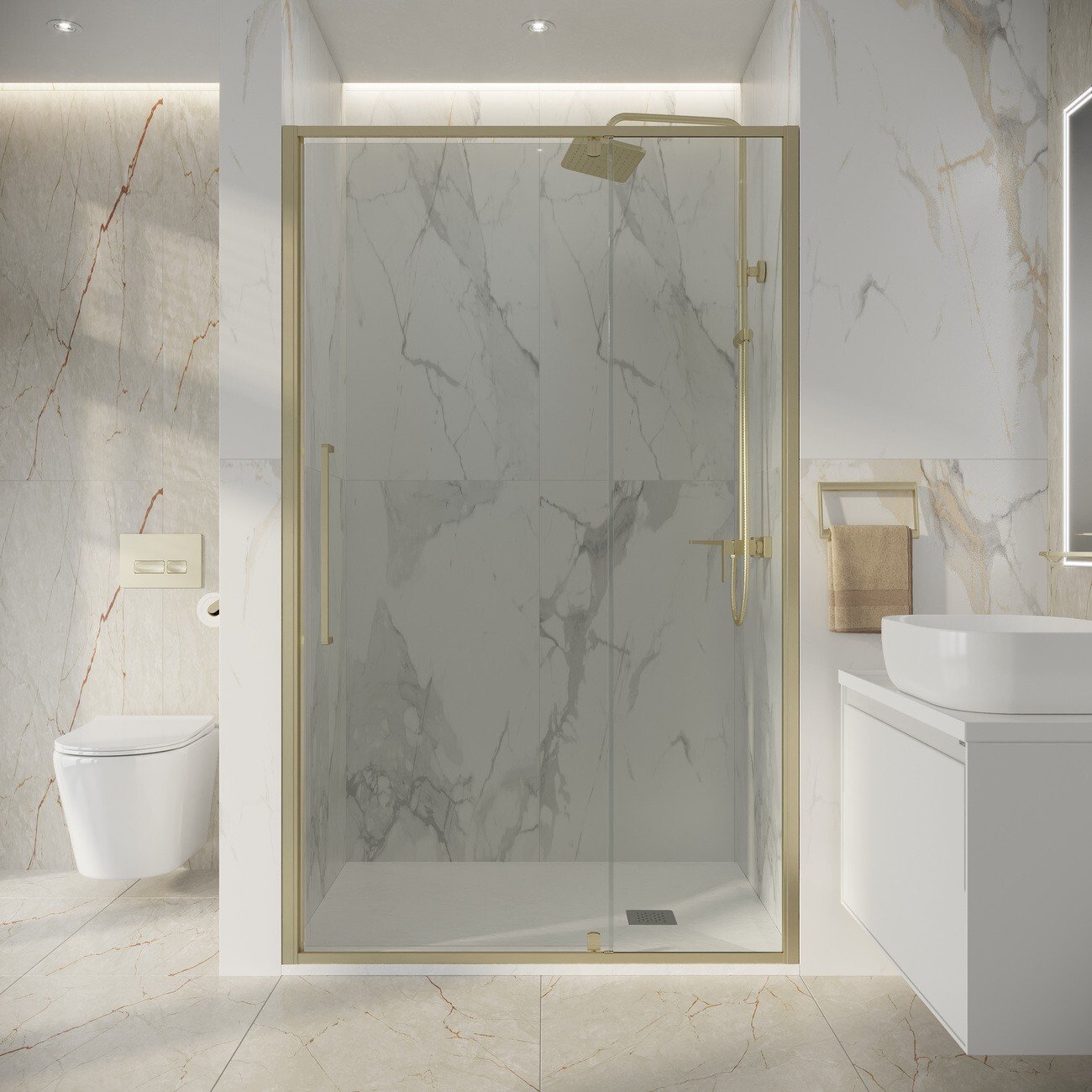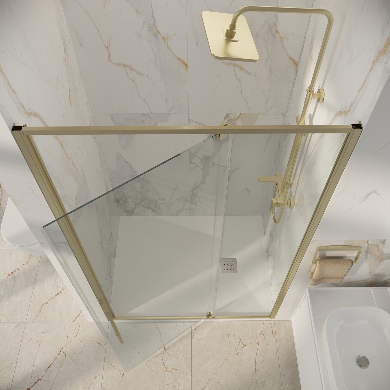 Дверь в нишу Niagara Nova NG‑45‑11ASG — элегантное решение для оформления ванной комнаты. Лаконичный дизайн с прозрачным стеклом и профилем в оттенке «золото сатин» придаёт пространству изысканность и визуально его расширяет.