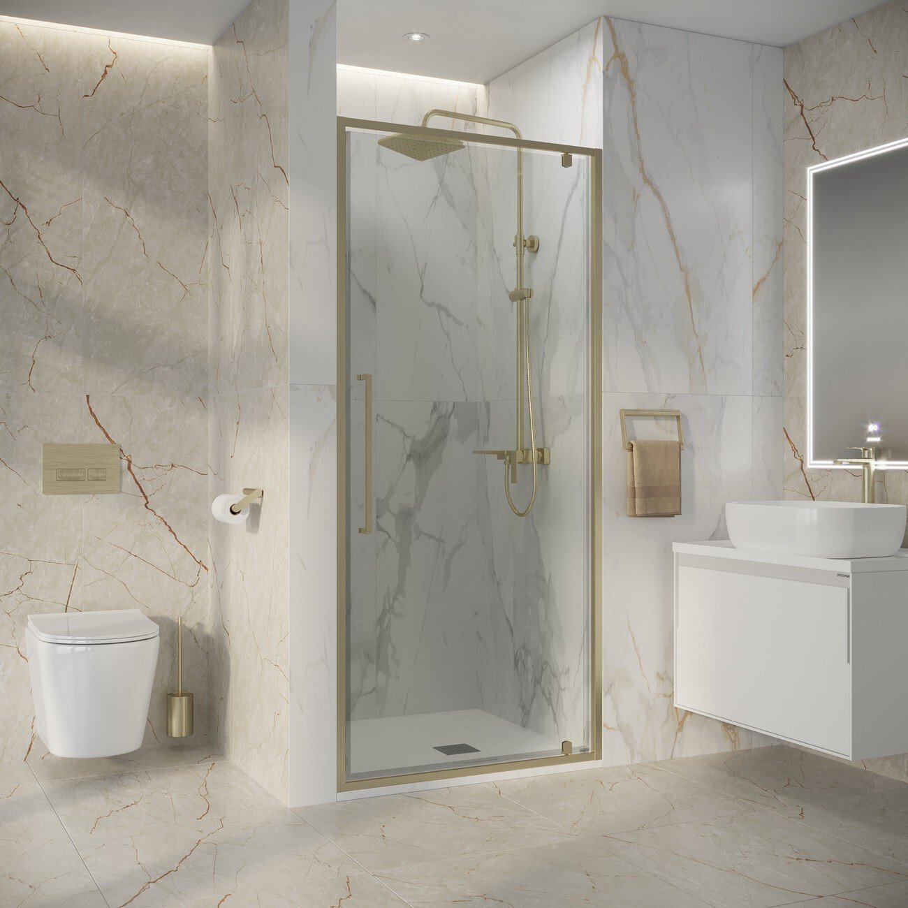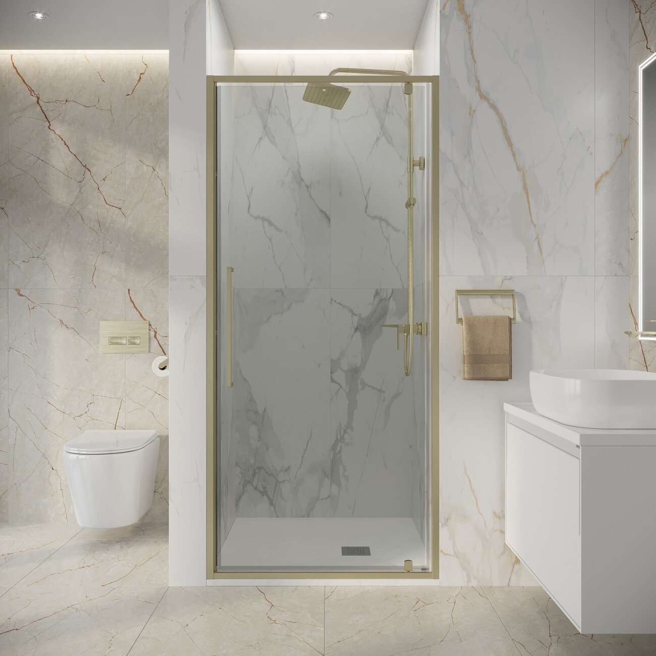 Дверь в нишу Niagara Nova NG‑45‑9ASG — изящное решение для оформления ванной комнаты. Её лаконичный дизайн с прозрачным стеклом и профилем в оттенке «золото сатин» придаёт пространству утончённость и визуально расширяет его.