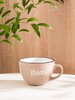 Лаконичный дизайн с изюминкой: сдержанная цветовая гамма (нежный бежевый/кремовый/серый — в зависимости от коллекции) впишется в любой интерьер; плавные линии и округлая форма дарят ощущение мягкости и спокойствия; ненавязчивая надпись добавляет кружке индивидуальности.